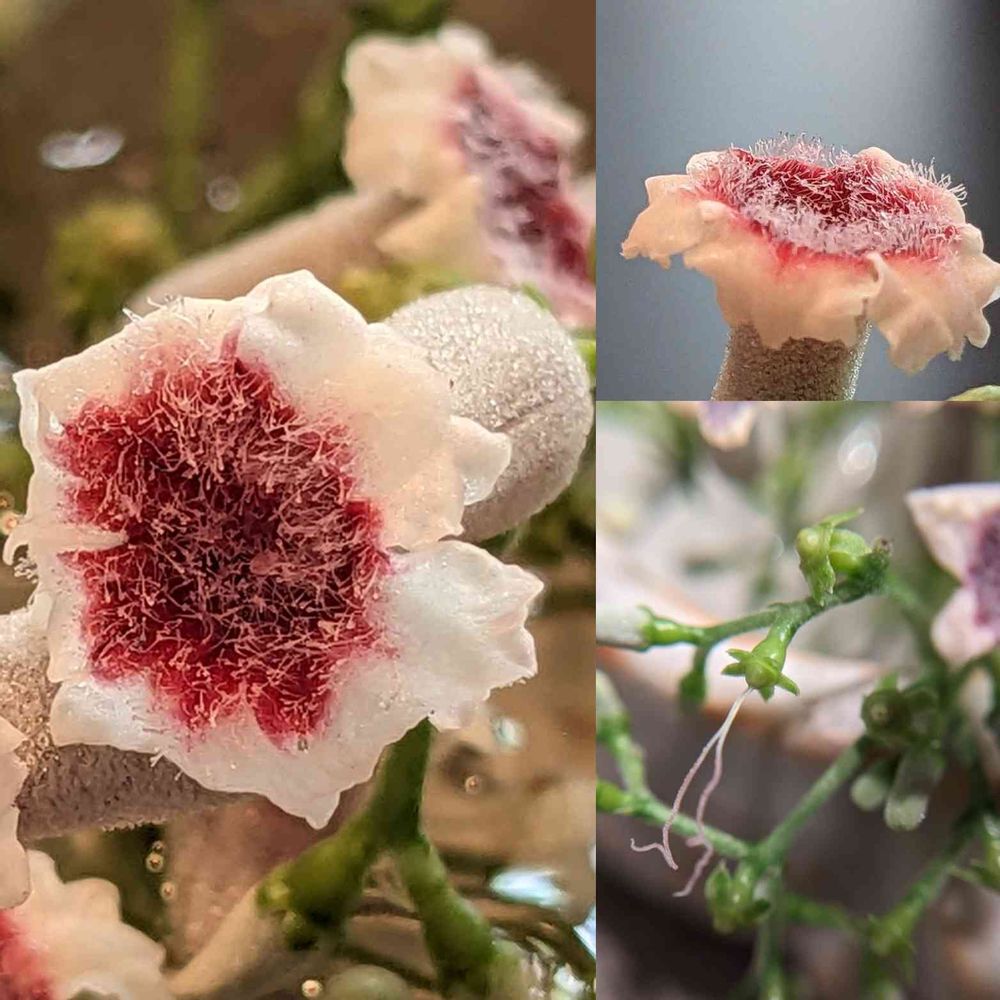 お花を摘んで~覗くとヒラヒラの白い花冠が筒状で内側の紅紫色に…チョロっと白い糸くずのようなものが見えました‥👀!!