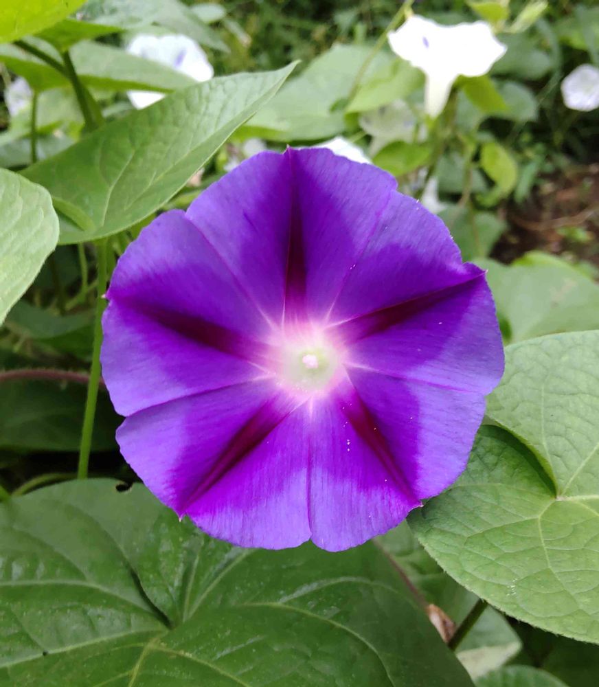 今朝の我が家のこぼれダネ朝顔💜🤍✨