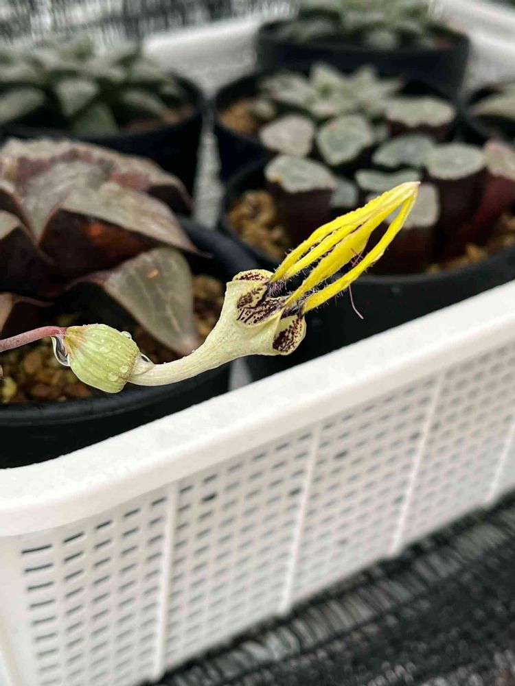 台風大雨に負けず、ギキー開花しました㊗️✨ 雨に打たれたせいか、他の方の写真で見てた細い毛は少しだけ。くさいらしいのでどんな香りなのかも確かめたかったけど、これも雨で消えちゃったかな。まだ開花してないつぼみがあるので次にも期待!