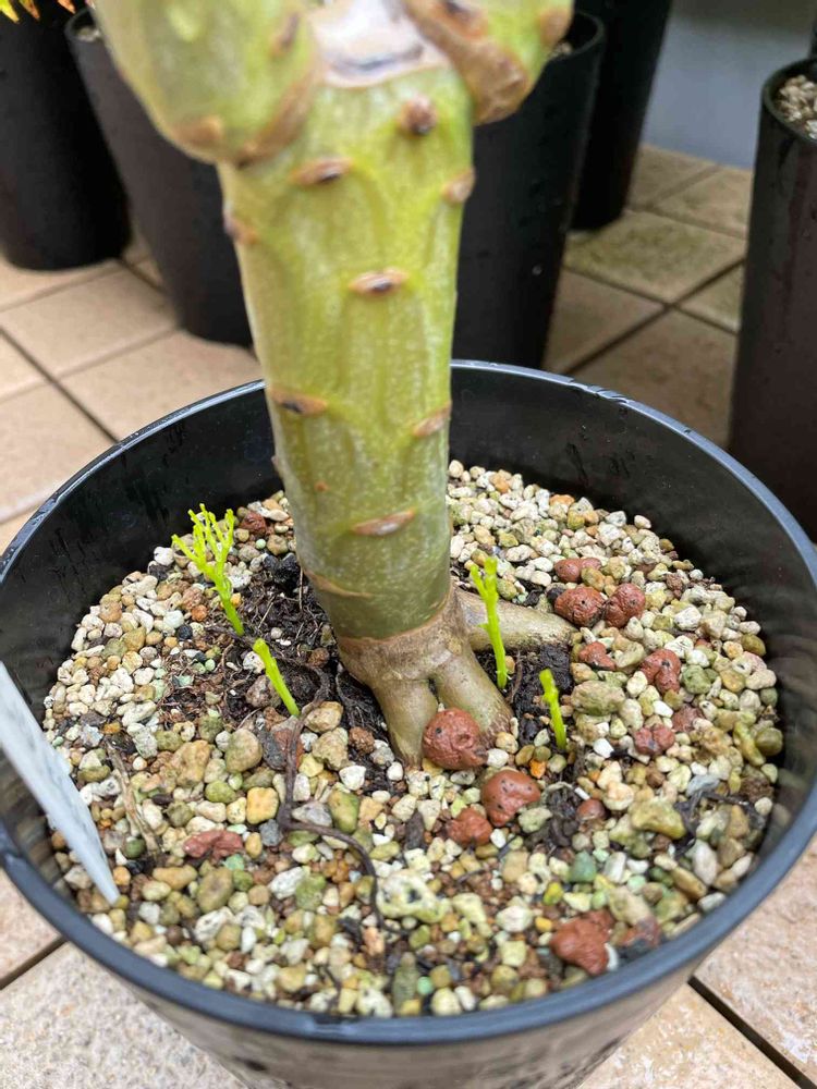 これも避難中。なんだか根本に小さい苗🌱が生えて来てますね😅ひこばえなんでしょうか?マツバランみたいに見えます。
