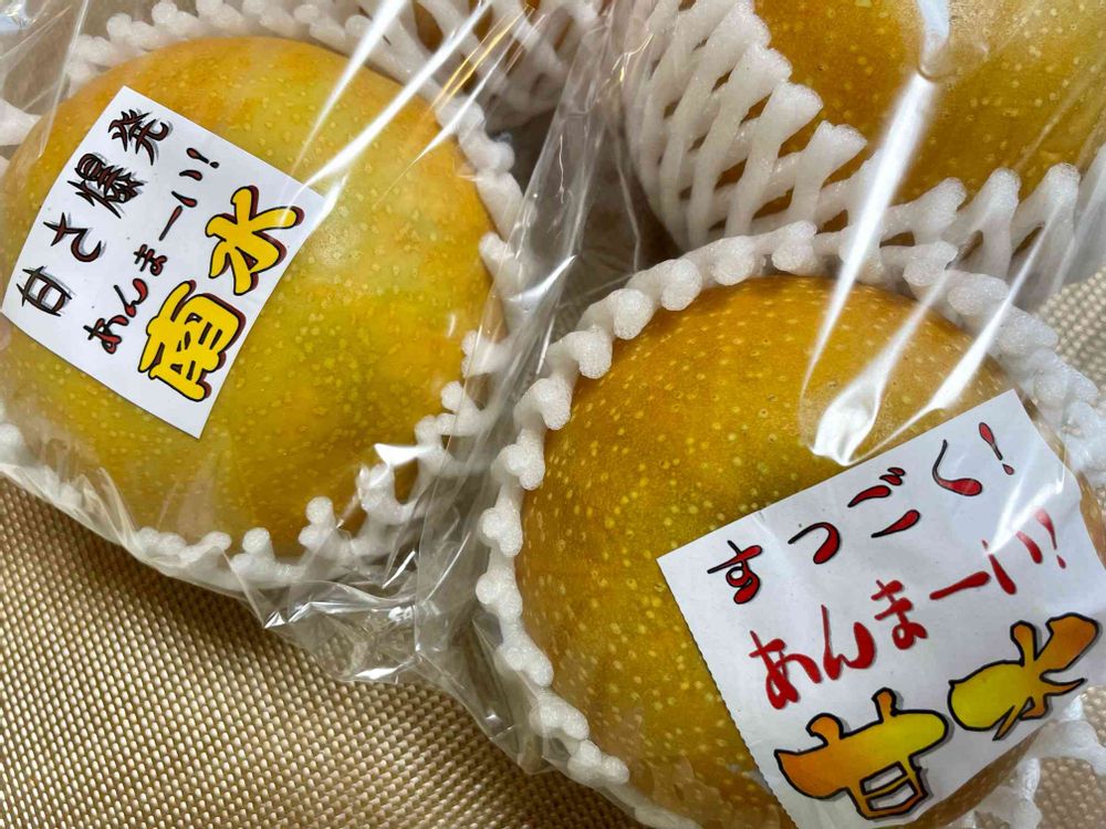 梨のパッケージについたメッセージにつられてꉂꉂ(ᵔᗜᵔ*)
