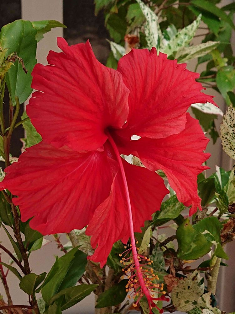 主人のお友達の方から頂いた、鉢植えの、斑入りの🌺さん✨😊✨