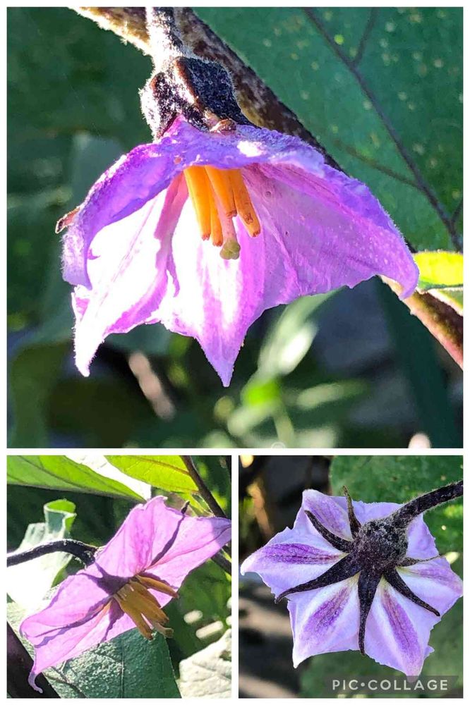 横顔、後ろ姿も麗しいナスの花。存分に味わい下さい。