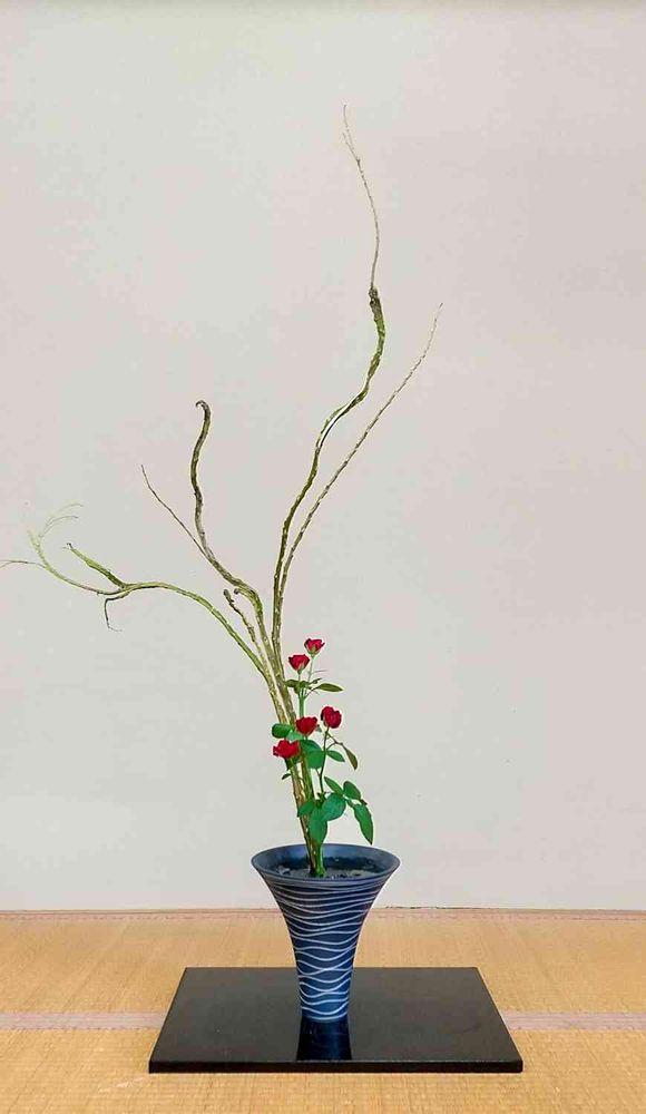 この生きもの感はイメージ湧きやすいいのですが、お生花の線を出すのが難しくて、今までは自由花だよなぁ~と思っていました。でもこのミニ薔薇との組合せがとても気に入ったので、是非またお生花でも生けたい花材となりました☺️