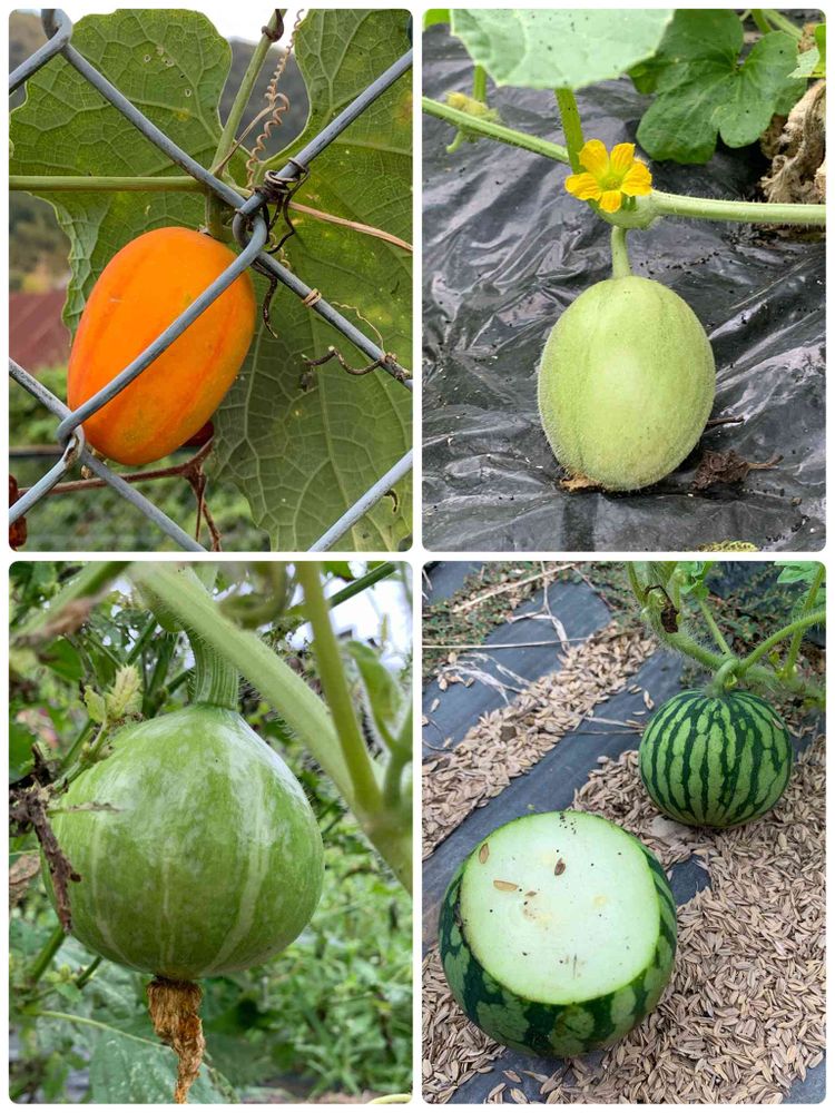 草ぼうぼうの畑を片付けていたら、ローランメロン🍈・かぼちゃ🎃・スイカ🍉が出て来ました‼️