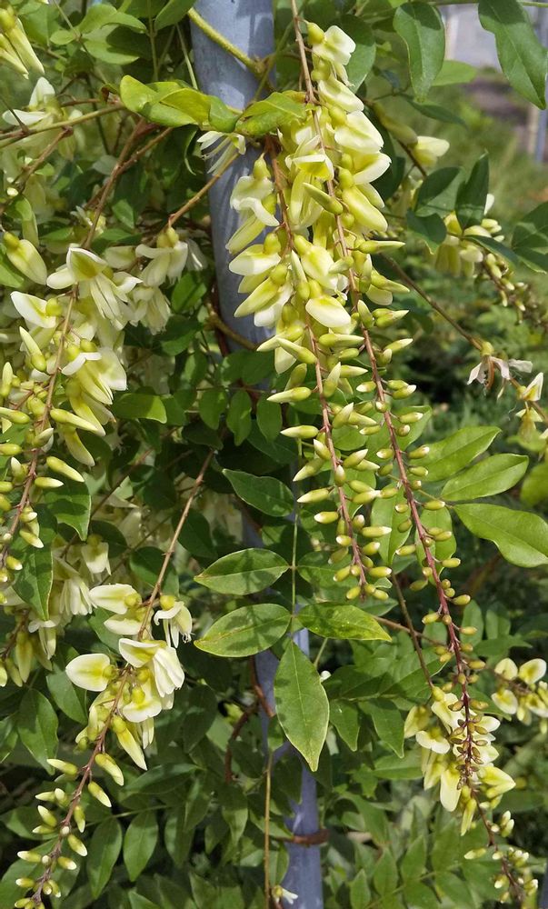 散歩道で夏藤がフェンスに絡みついて咲いていました🤍