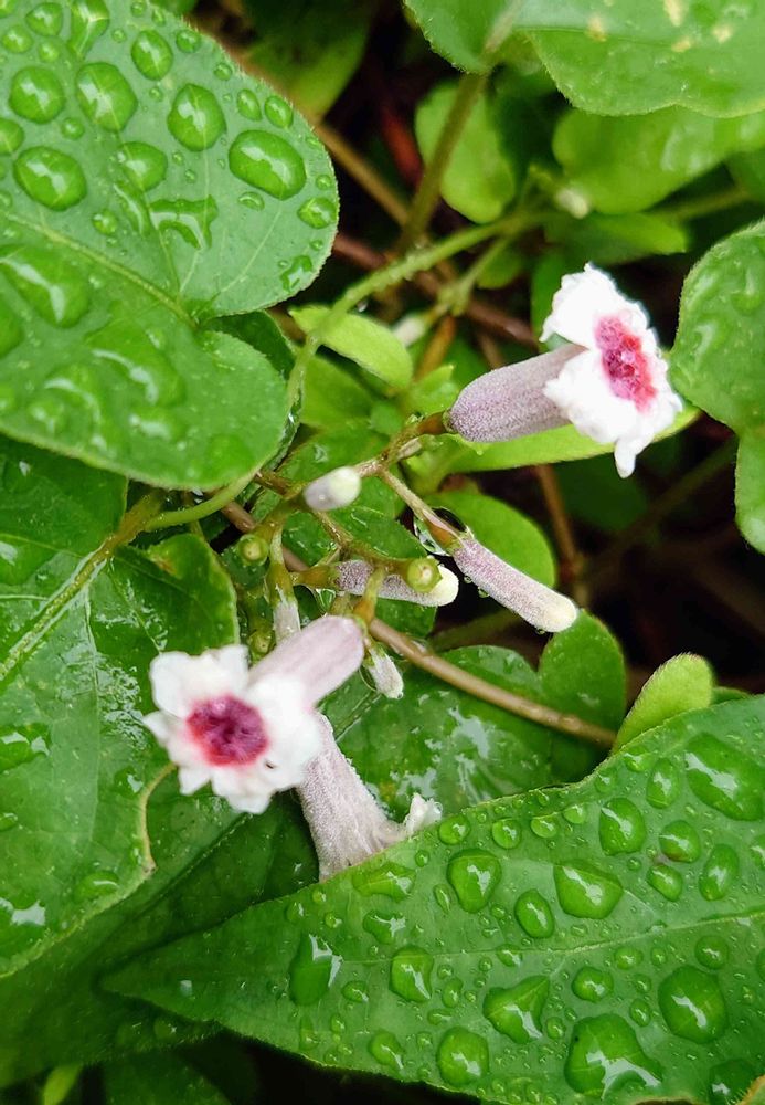 可愛いサオトメバナ(ヘクソカズラ)が雨の中、元気に咲いていました♡🌿