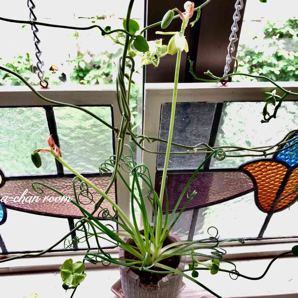 このクルンクルンした葉に魅かれてお迎えしましたが、お花は春蘭みたいに清楚な感じです。丁度この頃ニトリさんのガーデングッズモニターに当選したので、マンション型の鉢に植えています🍀