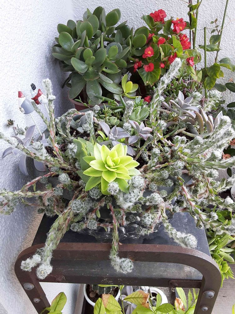 ベランダの寄せ植えも大きくなって火祭りが巨大化。