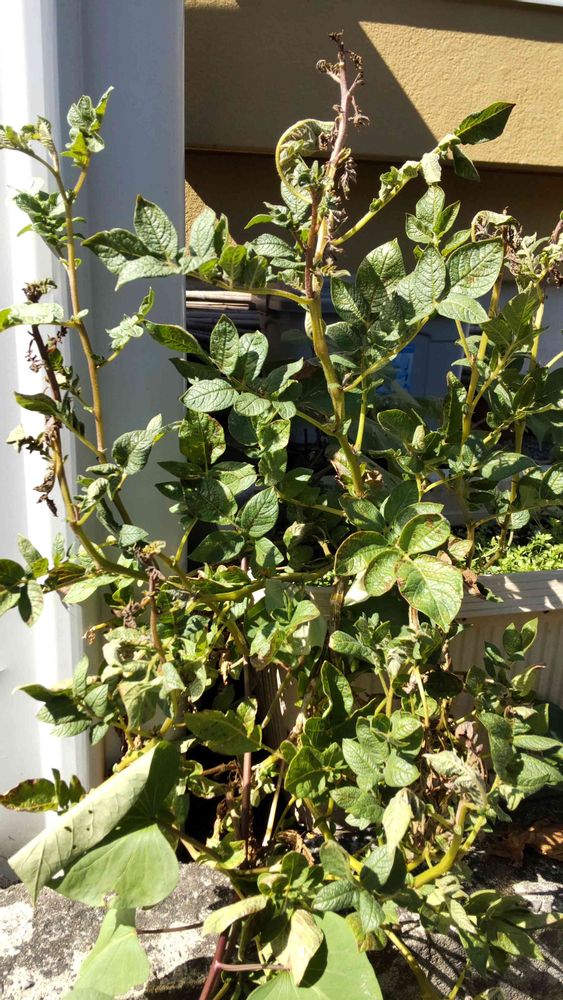 もとが芽を出しちゃった台所のジャガイモなんで、収穫はそこまで期待してるわけでもないデスけど、