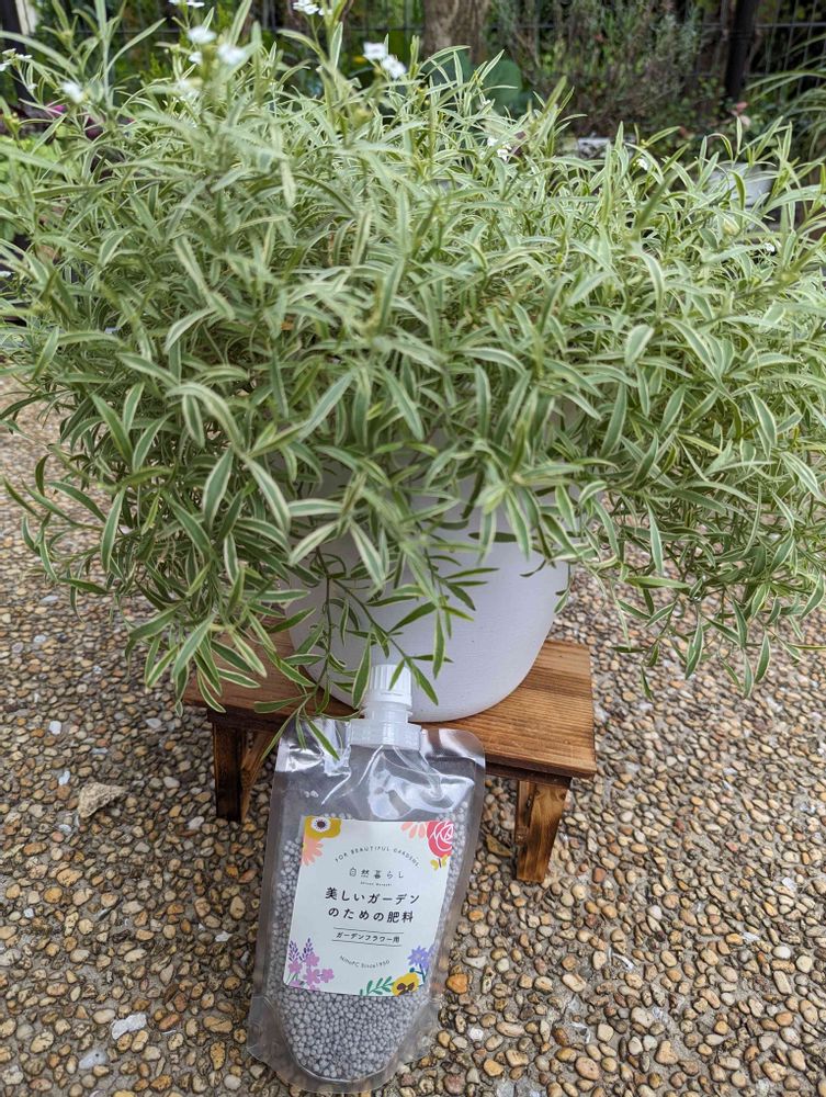 モリモリになって花が咲きそうになってるので、自然暮らしさんのキャンペーンで頂いた美しいガーデンのための肥料を施しました。
