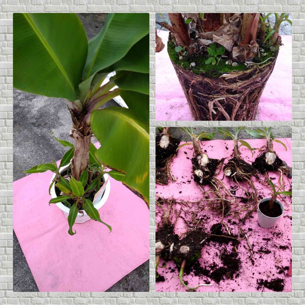 200円バナナ植え替えと同時に子株を切り離して見ました。