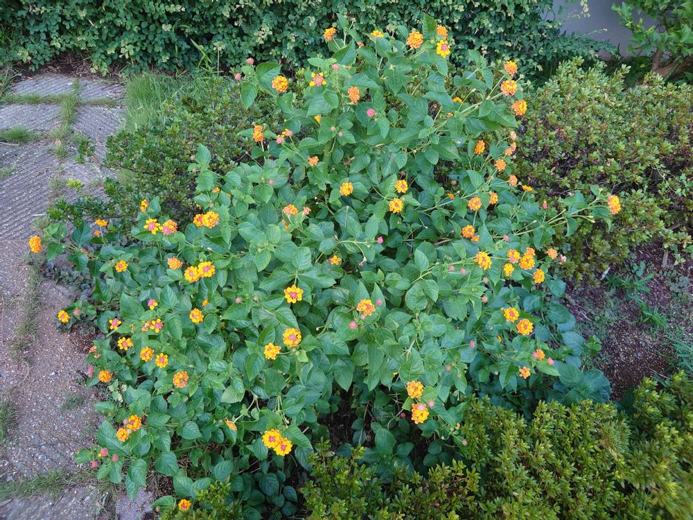 夕方に涼しくなってからマンションの庭を散歩しました。ランタナですかね❀