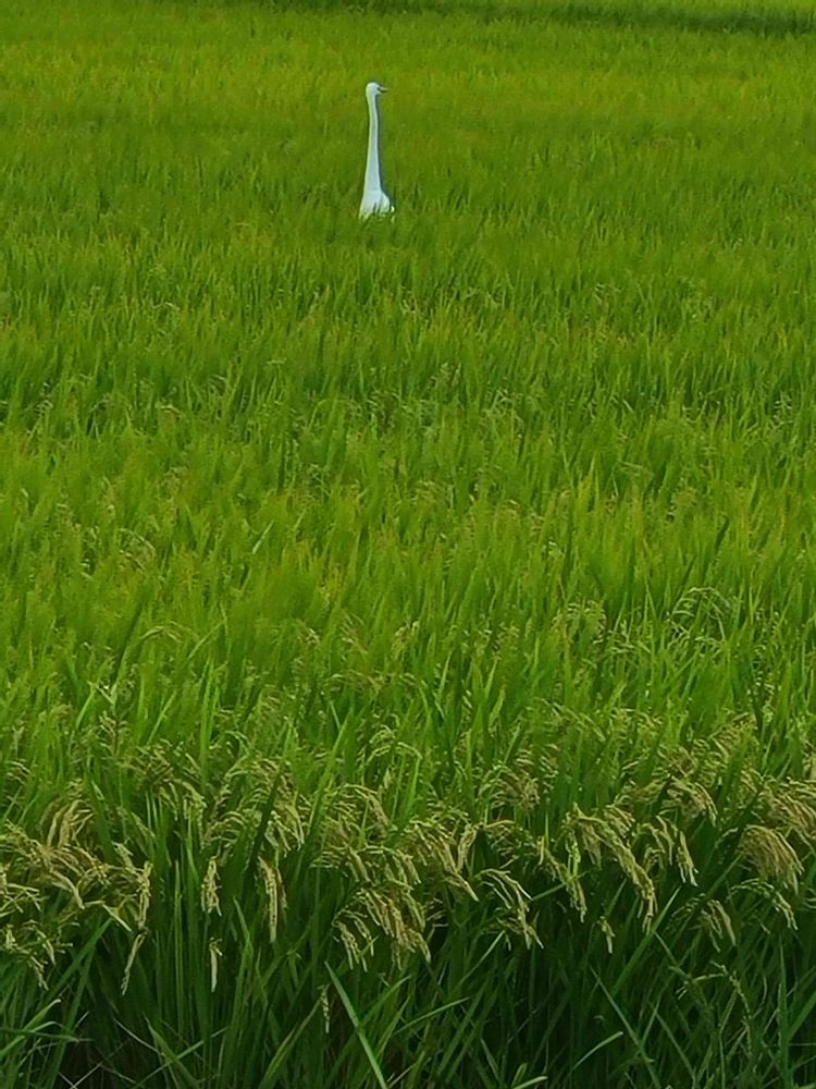 稲刈りした田んぼが出てきましたが、こちらはまだ緑色が多い田んぼです🌾