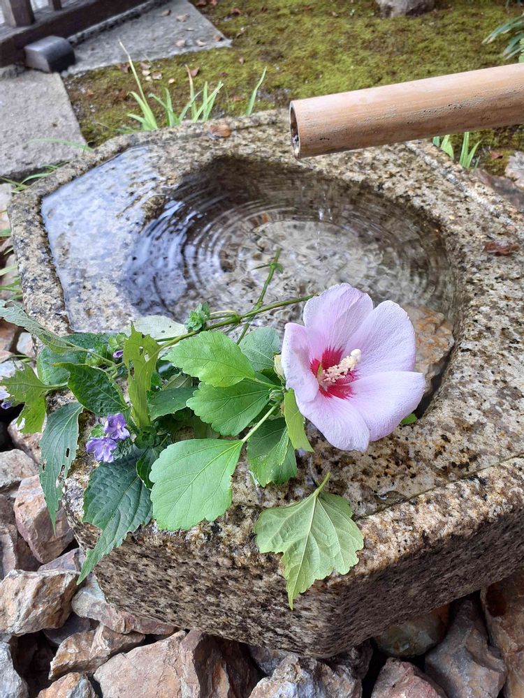 今日は久しぶりの外食。遅めのお昼を食べにお蕎麦さんに。入り口に涼しげなお花が💟