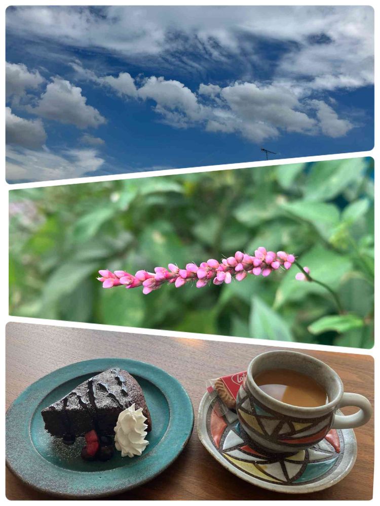 カフェも青空も、お花と一緒に癒されたので、投稿してみました🌸☕️🍀✨