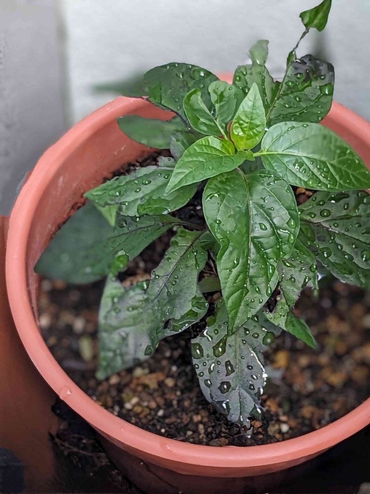 やまりんさんの玄関,観賞用トウガラシ ブラックパール,雨降り月曜日の投稿画像