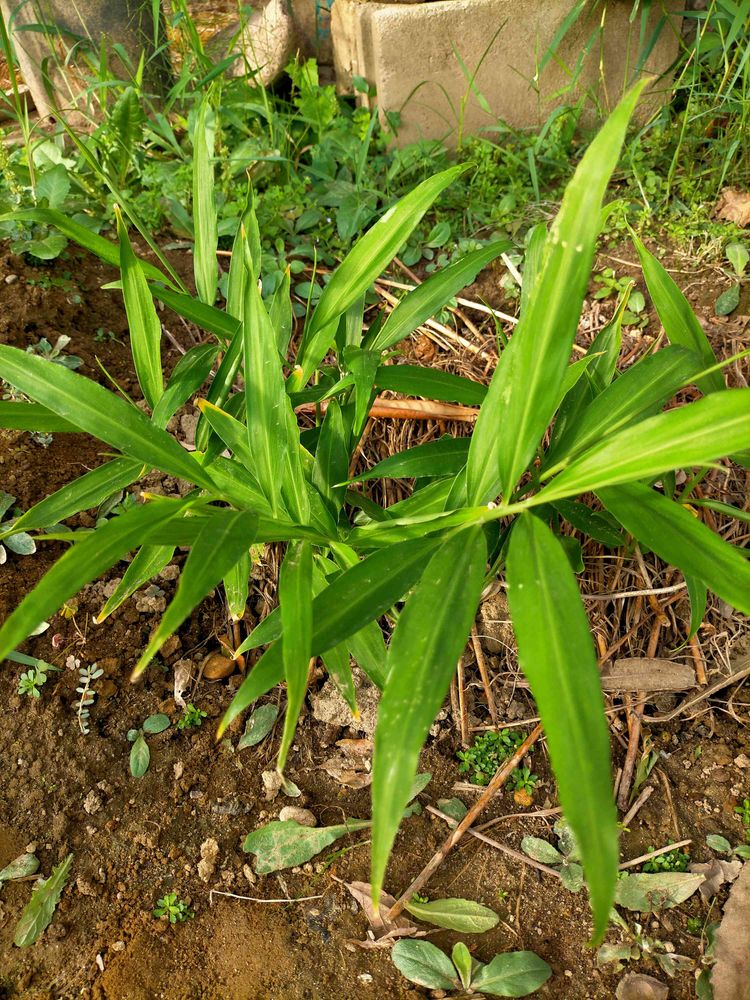 しょうがを埋めておいたら、葉っぱが、出てきました。🏡