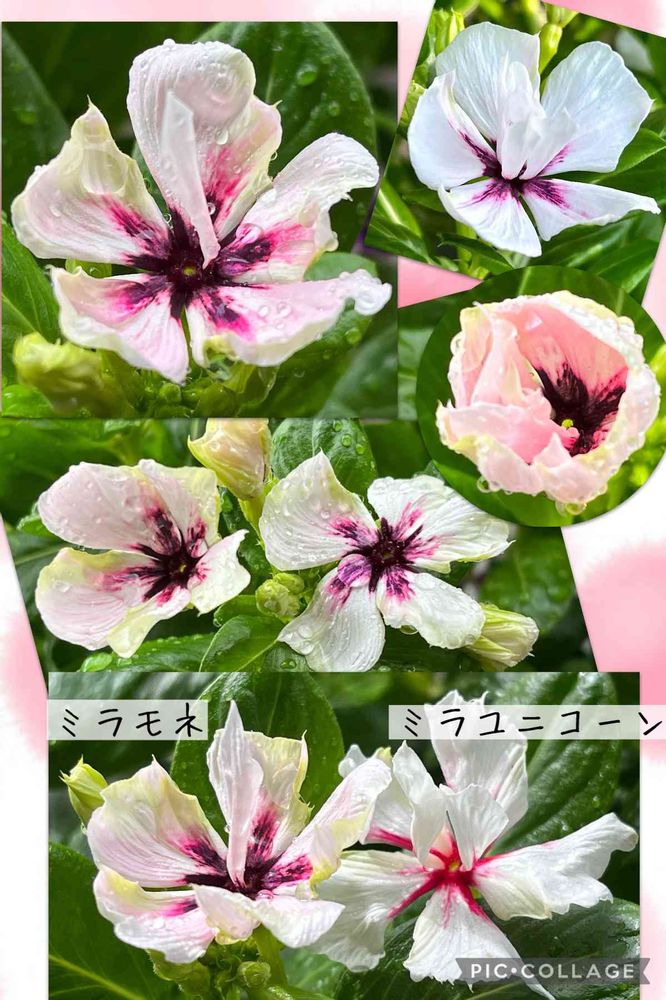 違いは中心部のピンクが紫っぽい方がミラモネ。ぐらいでしょうか?現在は。