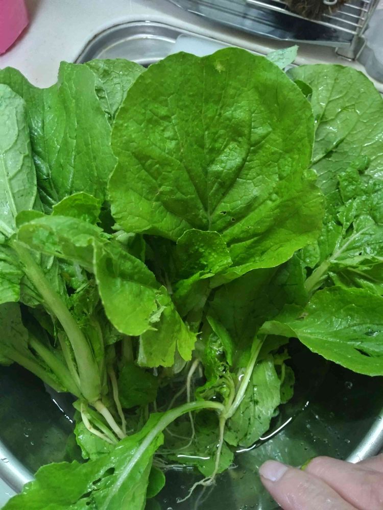 間引しないと込み合って成長しないから元気で虫が食べて無い苗を残し後は間引き菜にして食べます。