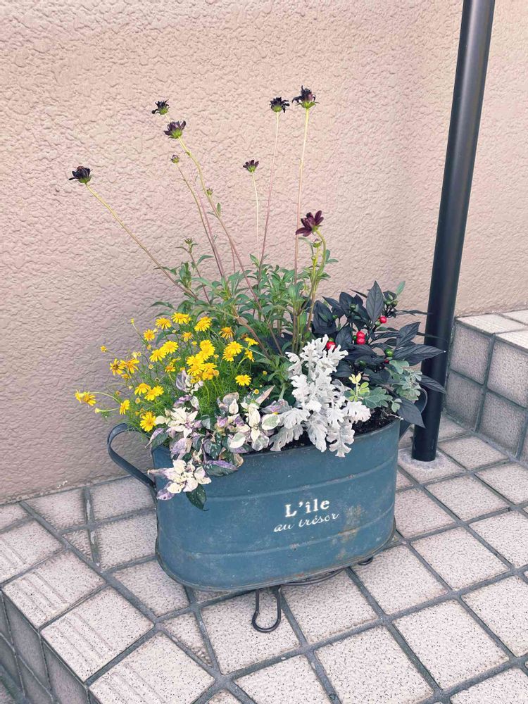 寄せ植え更新しました😊チョコレートコスモスって本当にチョコレートの香りがするんですね!