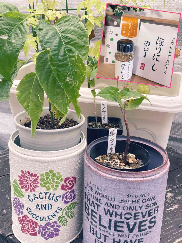 前にコメントのやり取りでサクラウツギの挿し木を頂ける事になり、そして届いたら大きなサイズのリメ缶や、試して見たかったほりにしのスパイスにカレー、お菓子