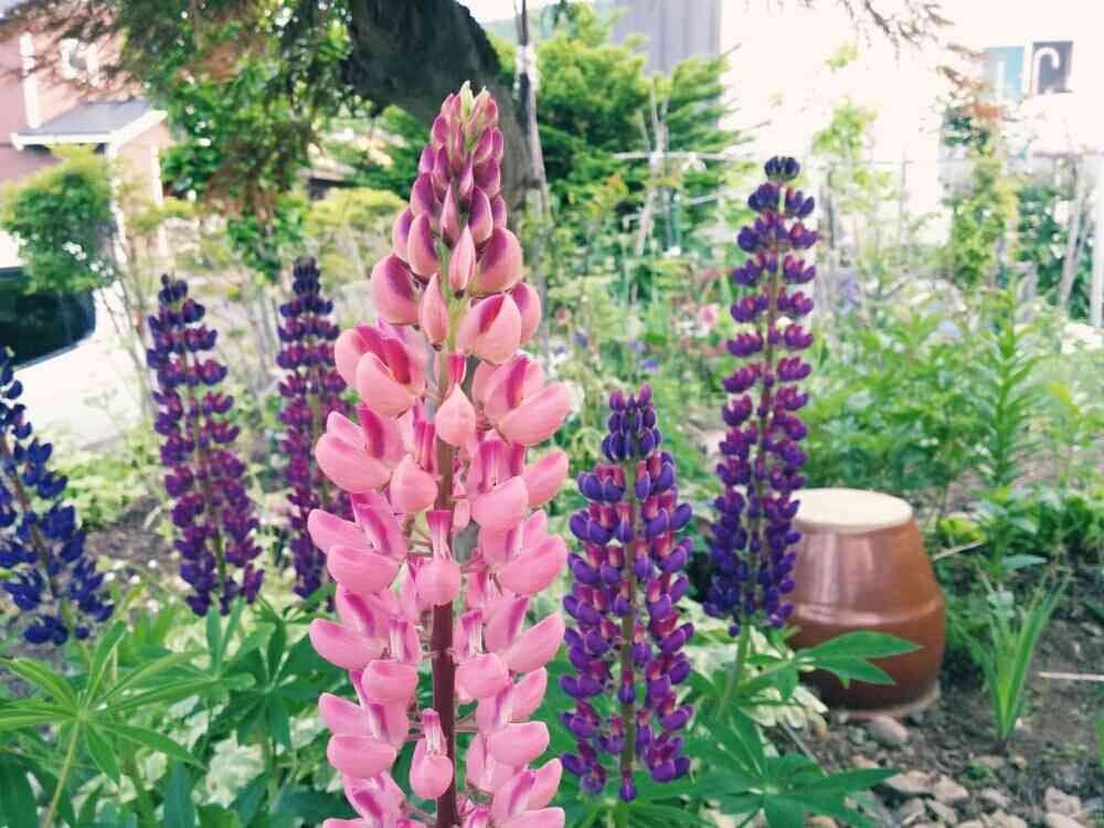 実家の庭はピンクと紫、嫁の実家は黄色と白、なぜか色分けされて咲いているルピナスw