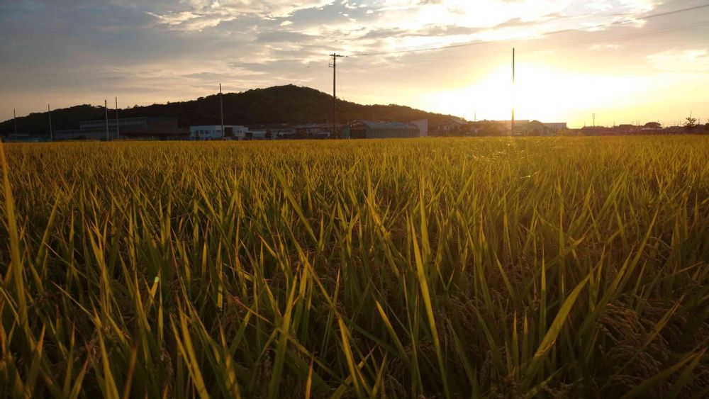 🌇に光る稲が素敵です😌