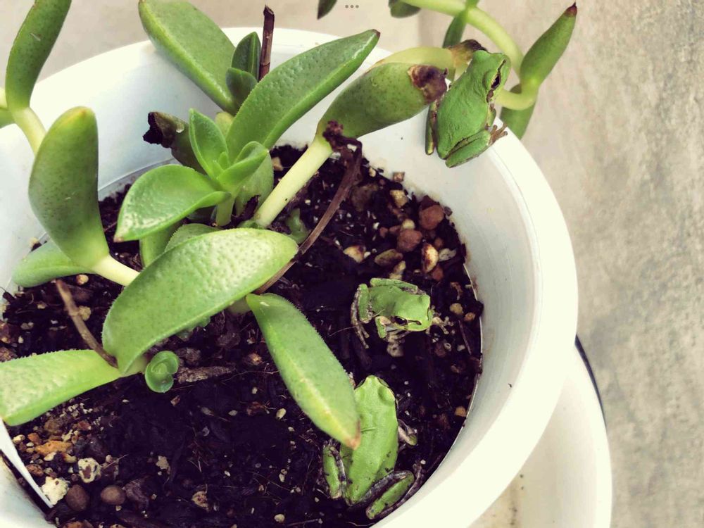 雨の日が続いて、アマガエルの訪問かありました。可愛いです。