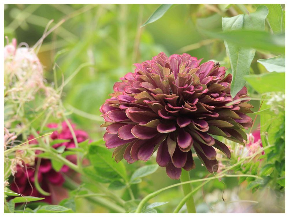 素敵な落ち着いた色ですね。ジニアは季節花ですが、色も形も随分バラエティに富んでいるので、色々な用途にも使えます。