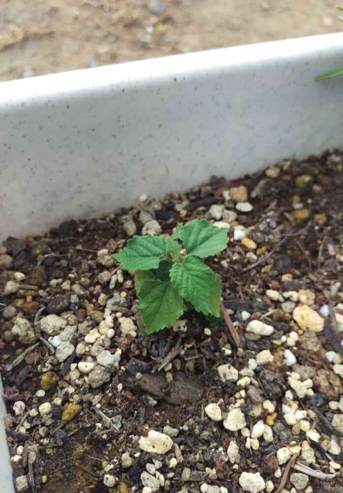ローズマリーのプランターに、この一本だけ謎の植物が生えてきました。