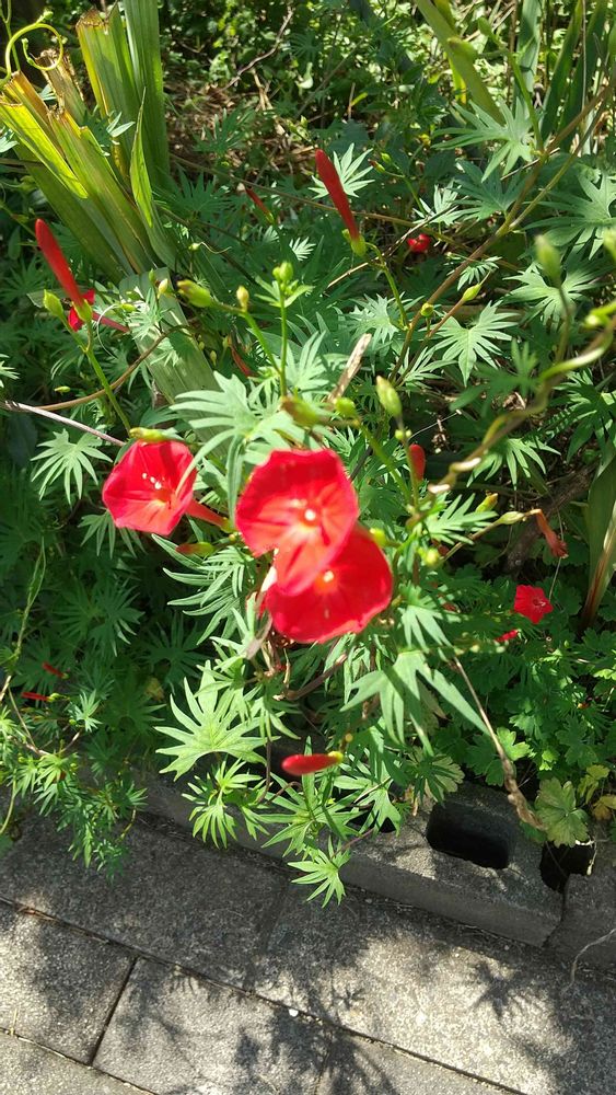 ハゴロモルコウソウです。ルコウソウとマルバルコウソウの交配品種らしいです。こぼれ種で毎年咲いてくれます。