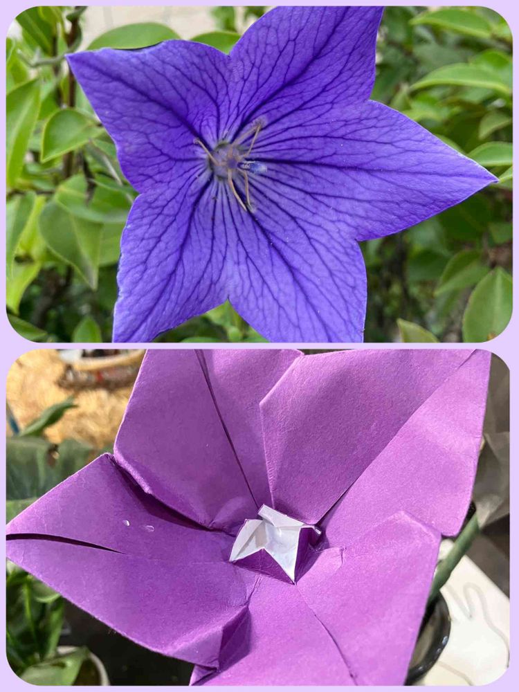 ⬇️は植物園の緑の相談の受け付けに、飾ってあった折り紙のキキョウです🥰🎶