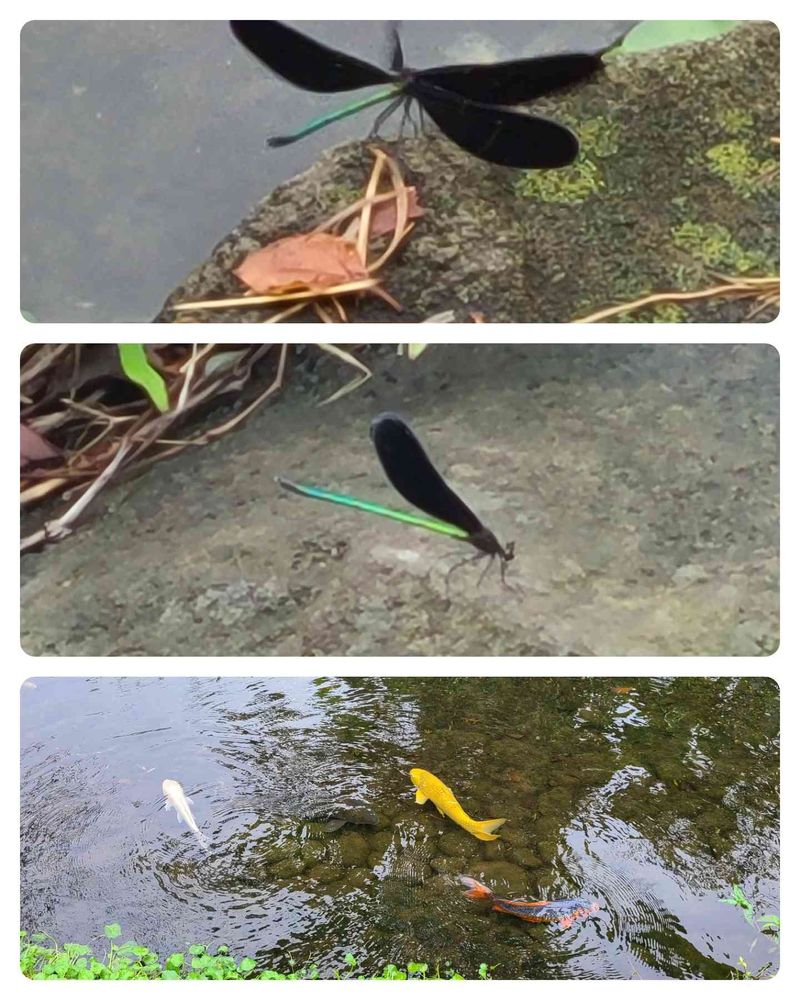 ハグロトンボ体の黒いのは見たことありますが 緑?初めて見ました