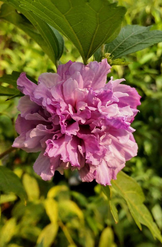 八重でちょっとくすんだピンクのムクゲ、うちの息子のマンションの植栽のと同じだわ💕