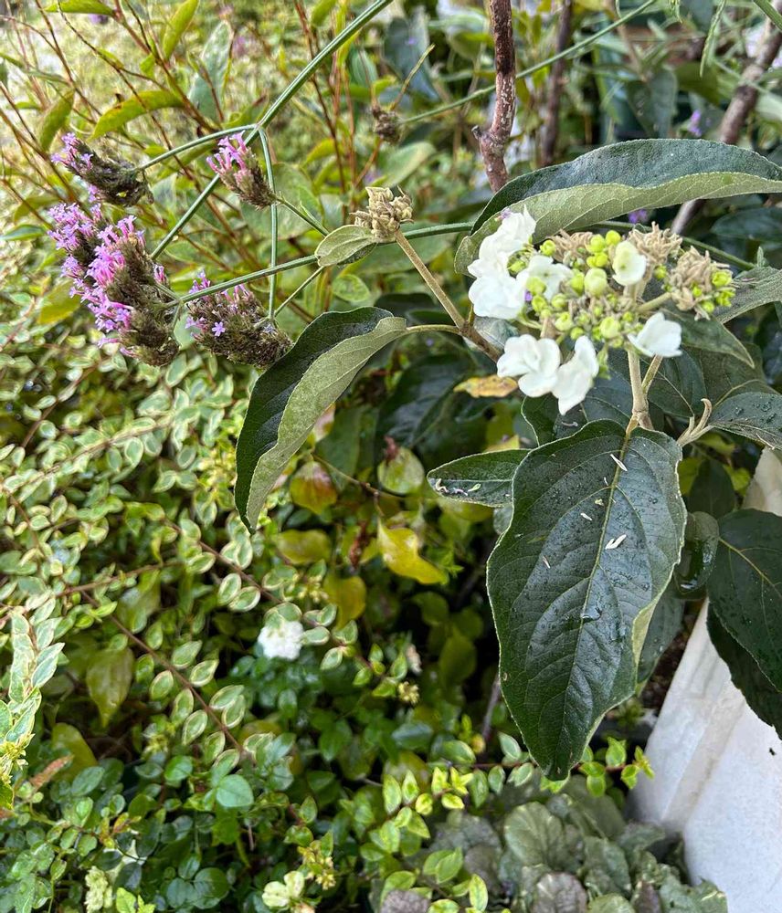 秋は鮮やかな実ができるそうですが、見た目がアジサイなので、花後に切ってしまってありません。