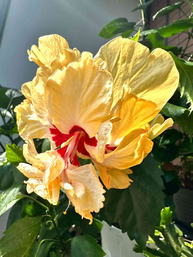 バルコニー/ベランダ,ハイビスカス イエローフラミンゴ,今日のハイビスカスの投稿画像