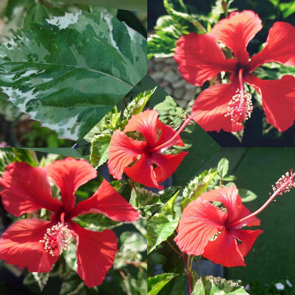 小さな庭,斑入りハイビスカス,赤い花の投稿画像