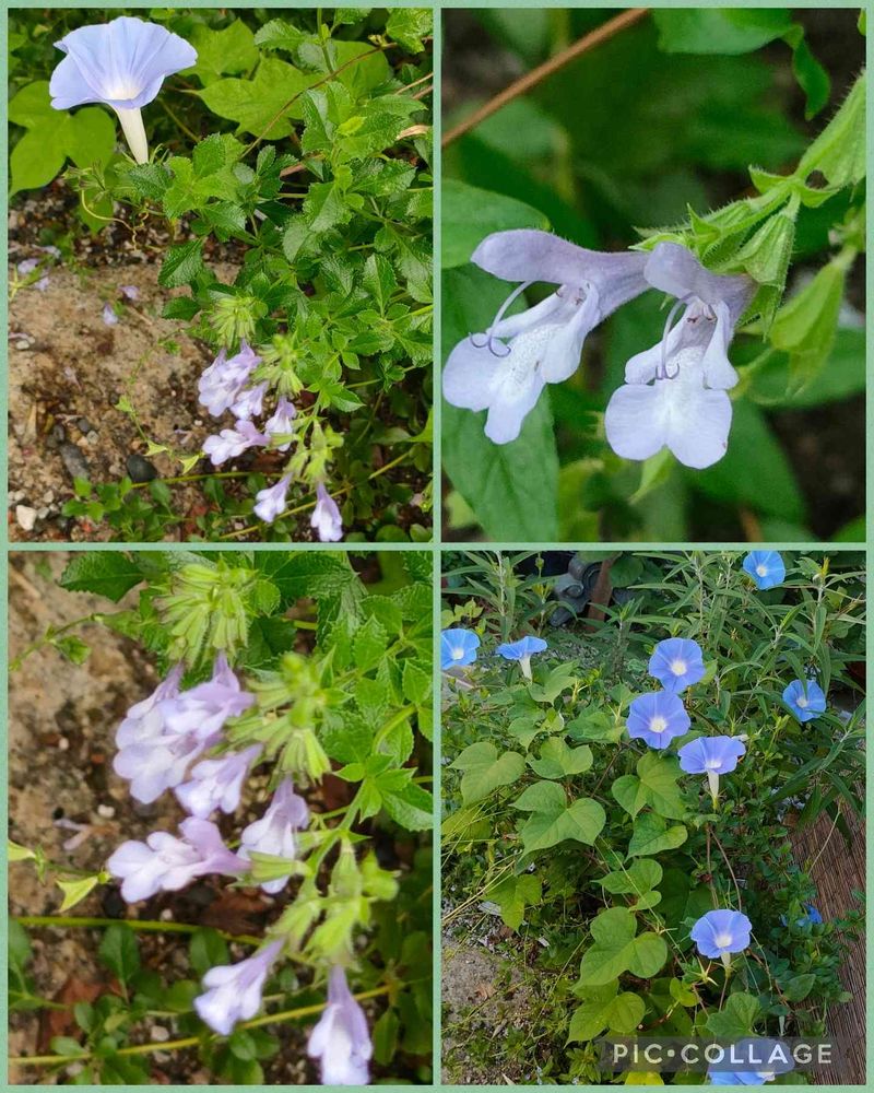 今日の庭のあちこちで咲くあさがおのお花🩵