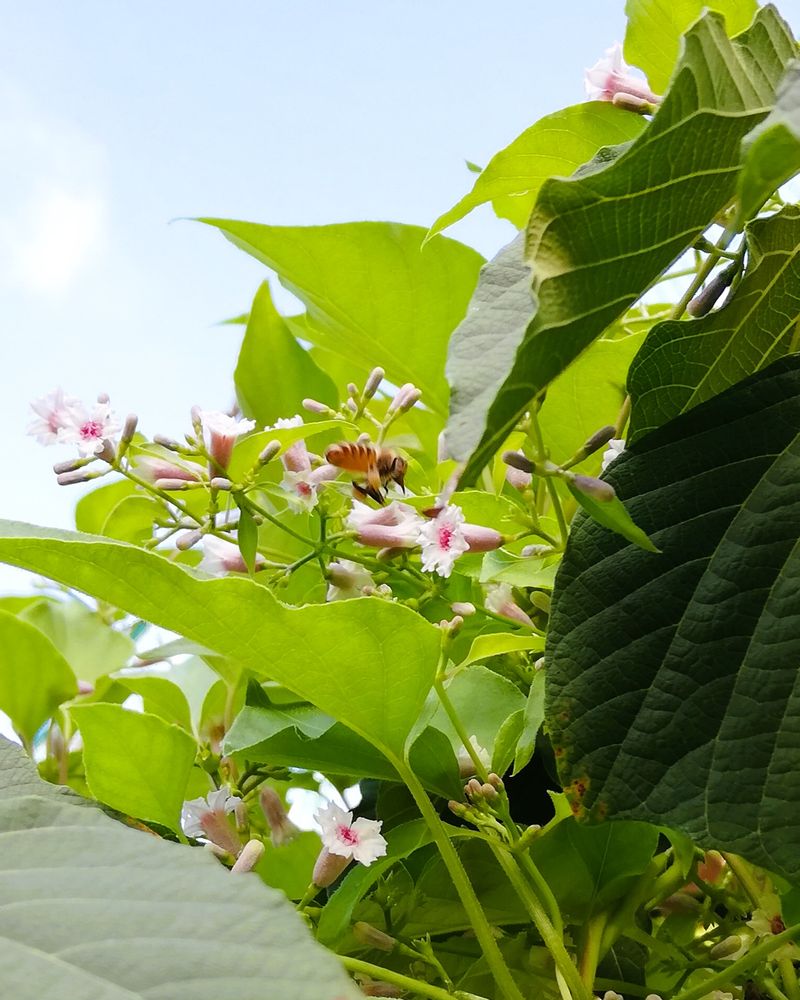 ヘクソカズラの花のまわりを飛んでいたミツバチ 2023-09-05