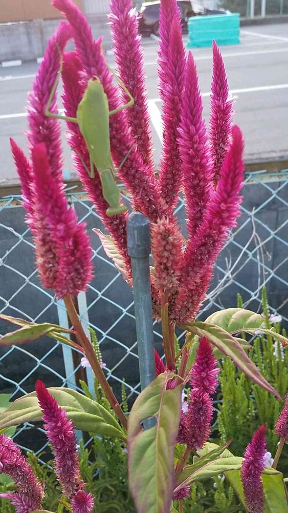 ヤリケイトウに珍客さん…いらしてました…💚😂!!…デカイ…