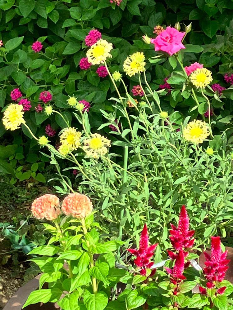 先日お迎えしたサーモンピンクのケイトウとガイラルディアの黄色がよく合う💛🧡
