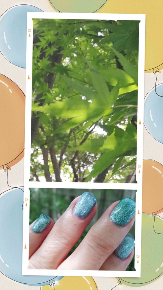 私のネイル💅のテーマが【四万十川に魅せられて】でグリーン&ブルーで✨✨です💚