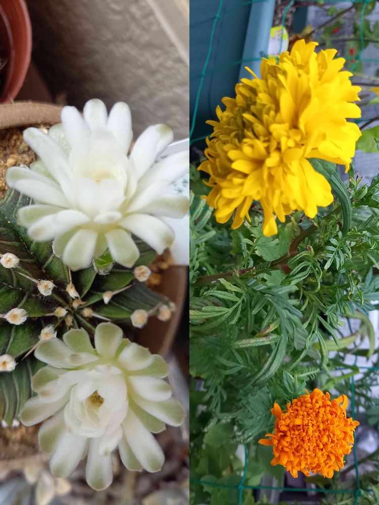 同じ株なのに黄色とオレンジとが1度に咲いてます