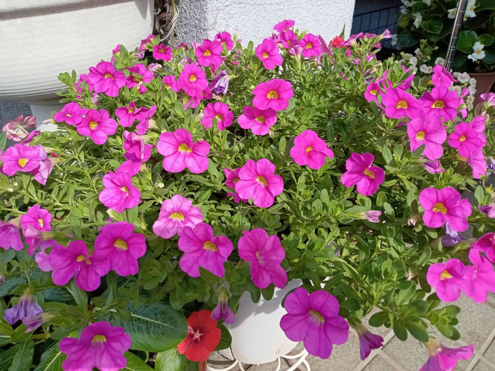 前回の黄色に続いて、やっとピンクが咲いてきました。同じ日に同じように切り戻ししてるのに、こちらの方が遅かった。咲き方も黄色より、やや控えめかな💦