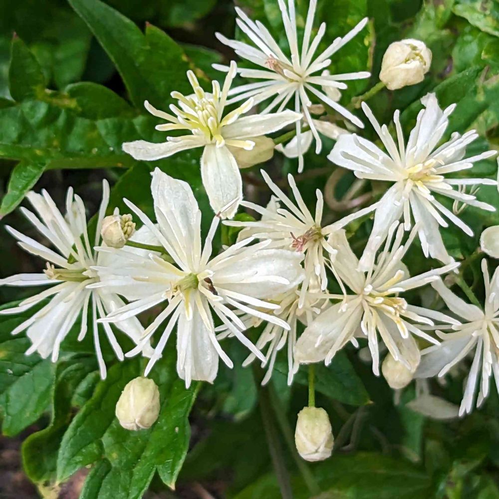 センニンソウに似ていますが、センニンソウの葉の縁はなめらかでギザギザがありませんが、ボタンヅルは葉の縁にノコギリの歯のようなギザギザがあるのが特徴です🤚