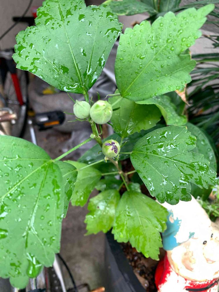 ネット購入した小さなムクゲ苗を植えたら、花芽が付きましたd(^_^o)