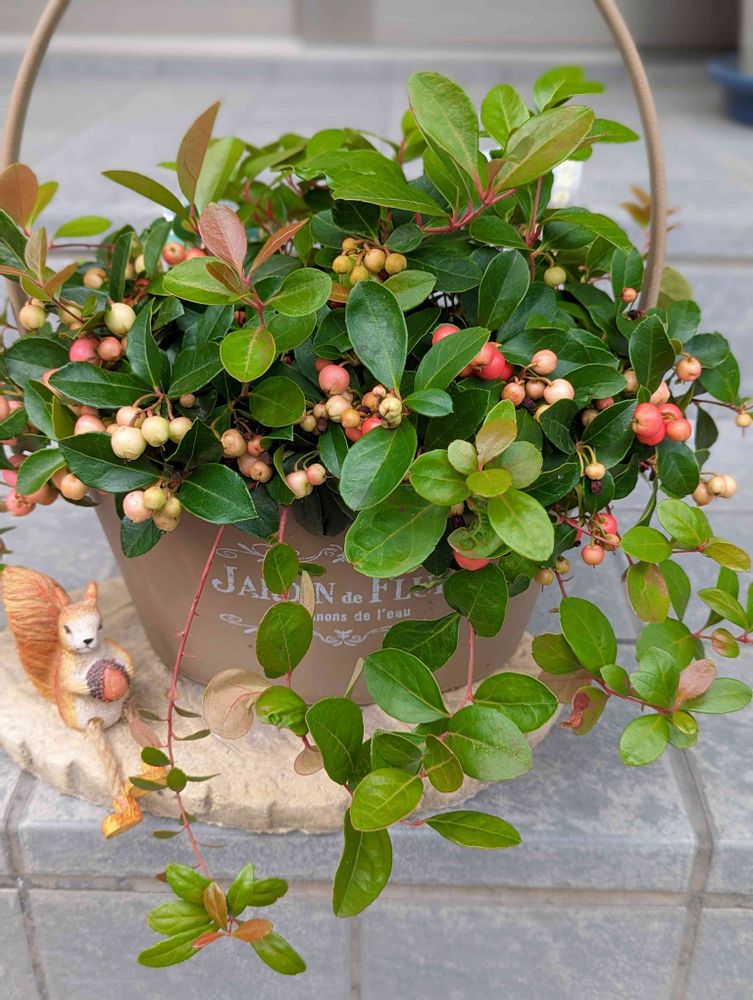 🐿さんと、鉢とが、チェッカーベリーをよりかわいく見せている、ベストな組み合わせですね🥰