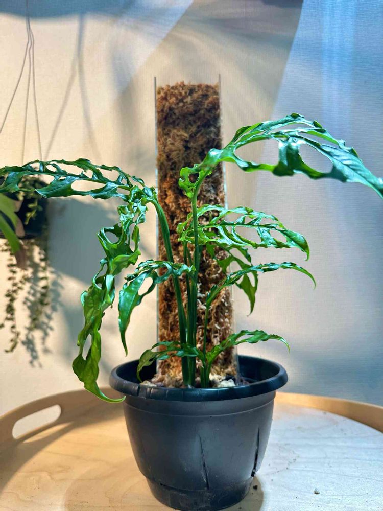 アンスリウムなので大きくなるとは思うのですが(すでにうちのフーケリーもだいぶでかい)長い葉がかっこよくて欲しくて欲しくてしょうがないのですよ。まあ手が出る値段ではなさそうなんですが😅