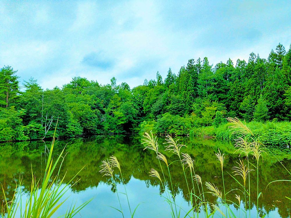 初めて見つけた山合の溜め池で、ススキさんに秋の気配を感じました🍂